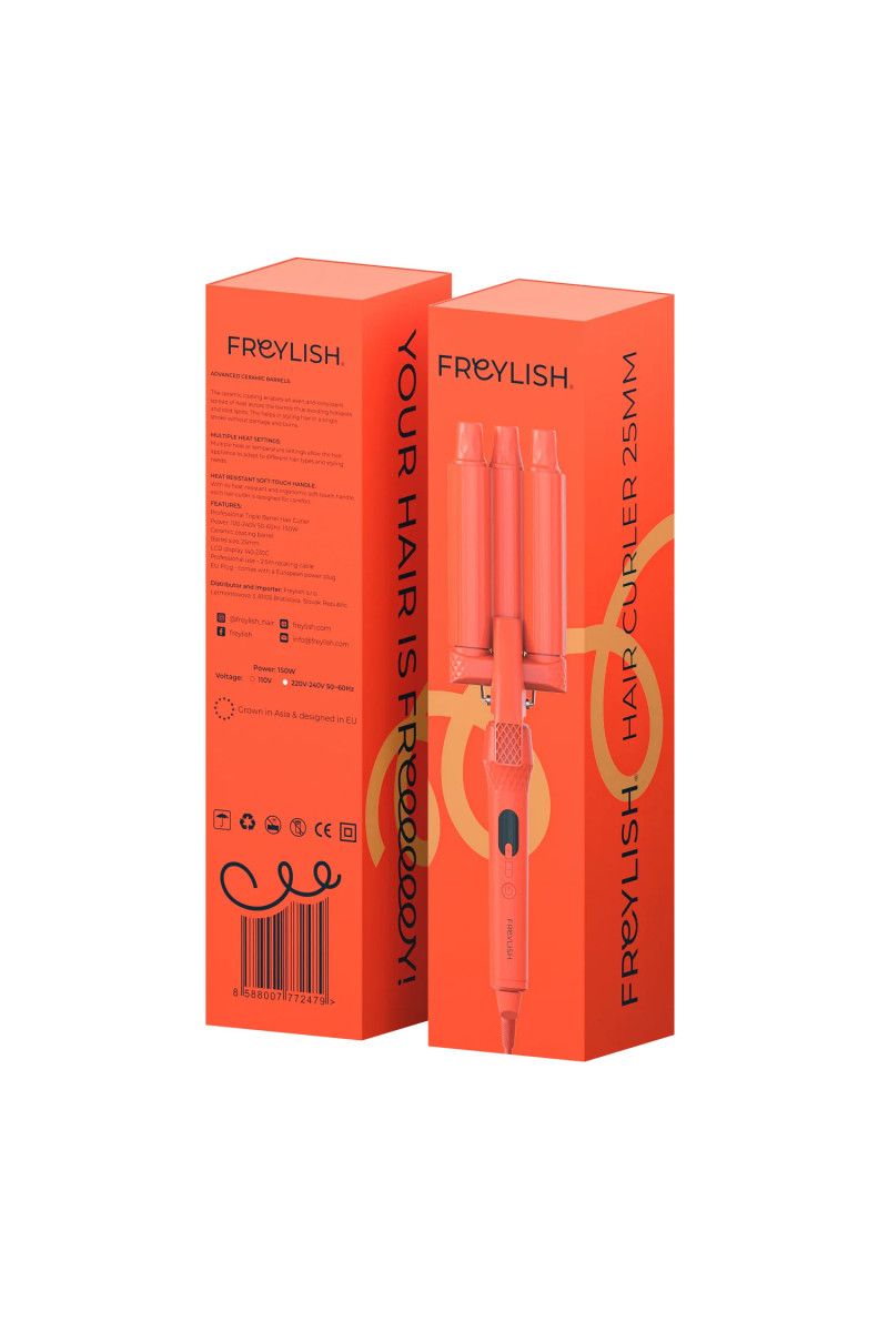 S Freylish® trojkulmou zvládnete styling za pár minut. Jednoduše zapněte, nastavte teplotu, vložte pramen vlasů a za 3–5 sekund máte krásnou vlnu. Výsledek? Dlouhotrvající vlny, které vypadají jako od profesionála. Přidejte si tuto kulmu do košíku a užijte si svobodu stylingu!